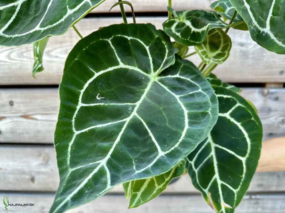Anthurium crystallinum je výnimočne atraktívna izbová rastlina, známa pre svoje veľké, srdcovité listy, ktoré sú výrazne žilkované a majú zamatový vzhľad. Tento hybridný druh je cenený pre svoju dekoratívnu hodnotu a je obľúbený medzi pestovateľmi, ktorí hľadajú unikátne a exotické rastliny do svojich interiérov. Listy tejto rastliny sú tmavozelené, takmer čierne, s kontrastnými striebristými žilkami, ktoré im dodávajú dramatický vzhľad. Anthurium crystallinum preferuje rozptýlené svetlo, no dobre znáša aj mierny tieň. Priame slnečné svetlo môže poškodiť a popáliť jej citlivé listy.