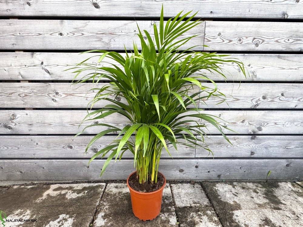 Dypsis lutescens, známa aj ako dypsis žltkastá, areková palma alebo motýlia palma, je populárna izbová rastlina pochádzajúca z tropického Madagaskaru. V interiéroch sa pestuje pre svoj elegantný vzhľad, kompaktný rast a nenáročnú starostlivosť. Vytvára husté trsy tenkých, jemne žltkastých stoniek, z ktorých vyrastajú dlhé, perovité listy sviežej zelenej farby. Tieto vlastnosti jej dodávajú exotický a svieži vzhľad, ktorý skvele oživí akýkoľvek priestor.