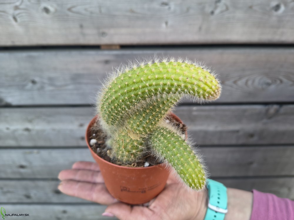 Hildewintera colademononis, známa ako "Opičí chvost" alebo ´MONKEY TAIL´, je atraktívny previsnutý kaktus so zaujímavými chlpatými stonkami, ktoré pripomínajú huňatý chvost. Tento jedinečný kaktus vyniká nielen svojim exotickým vzhľadom, ale aj nápadnými ružovo-červenými kvetmi, ktoré sa objavujú počas teplých mesiacov. Ideálne sa hodí do závesných kvetináčov, vysokých nádob alebo na poličky, kde jeho dlhé stonky vytvárajú pôsobivý závesný efekt.