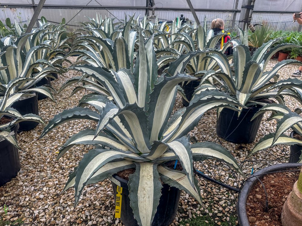 Agáva americká ´Mediopicta Alba´ je nádherná sukulentná rastlina ktorá pochádzajúca z Mexika. Vytvára elegantné ružice mäsitých, ostrohranných listov so šedo-zeleným okrajom a výrazným krémovo-bielym stredovým pruhom. Okraje listov sú zdobené zakrivenými ostňami, ktoré dodávajú rastline jedinečný vzhľad. V dospelosti (vek 10 a viac rokov) rastlina kvitne veľkými, žlto-zelenými kvetmi. Po odkvitnutí rastlina zomrie. Agáve sa najlepšie pestuje v mierne kyslých, piesočnatých, kamenistých a dobre priepustných pôdach. Ideálne je slnečné stanovisko alebo polotieň. Je to rastlina, ktorá si vo svojich pevných listoch dokáže vytvoriť dostatočné zásoby vody, preto jej prospieva skôr sucho ako nadmerná zálievka. Odolná a efektívna rastlina, ktorá vynikne v každej exotickej záhrade alebo v kvetináči na terase.