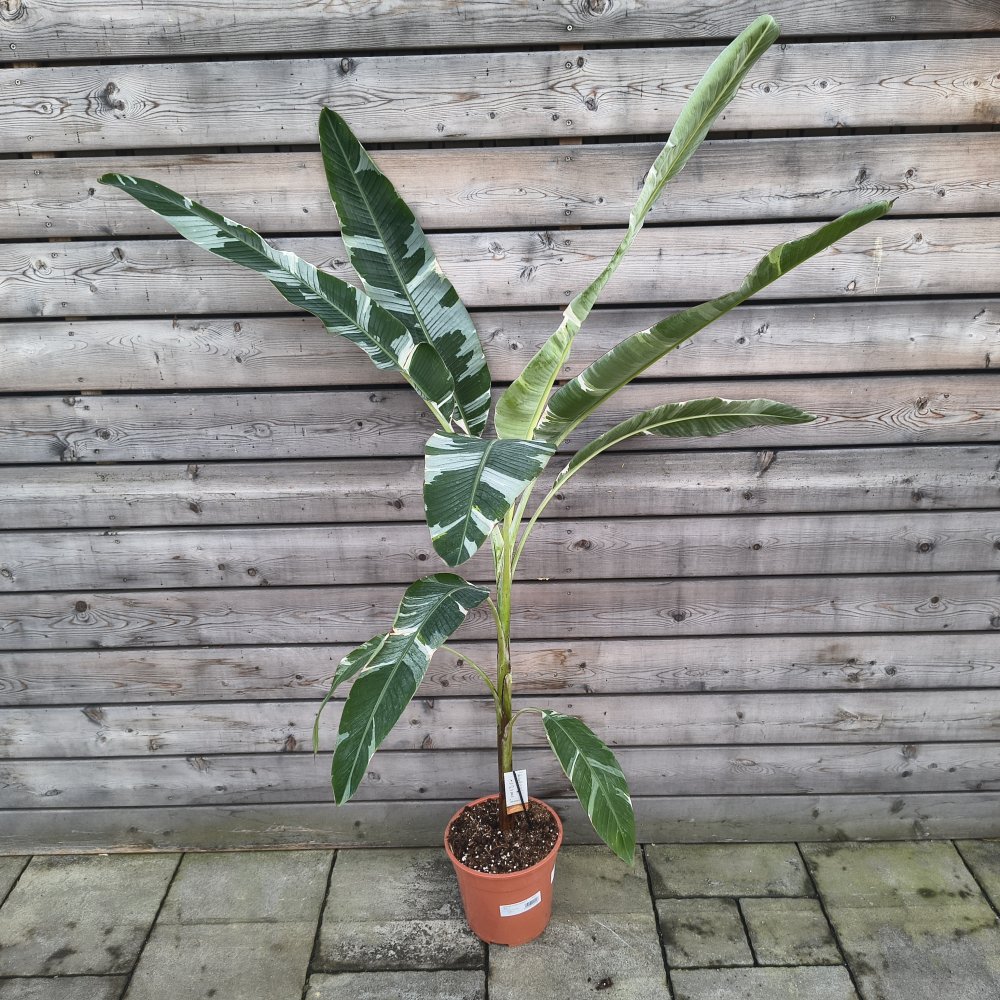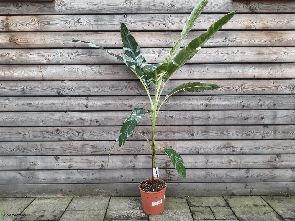 Musa ‘Florida Variegata’ je exkluzívna a mimoriadne dekoratívna odroda banánovníka, ktorá zaujme veľkými, elegantne panašovanými listami v kombinácii sviežej zelenej a krémovo-bielej farby. Ide o už výrazne vyvinutý, dominantný kus, ktorý okamžite vytvorí luxusnú tropickú atmosféru v interiéri alebo zimnej záhrade.