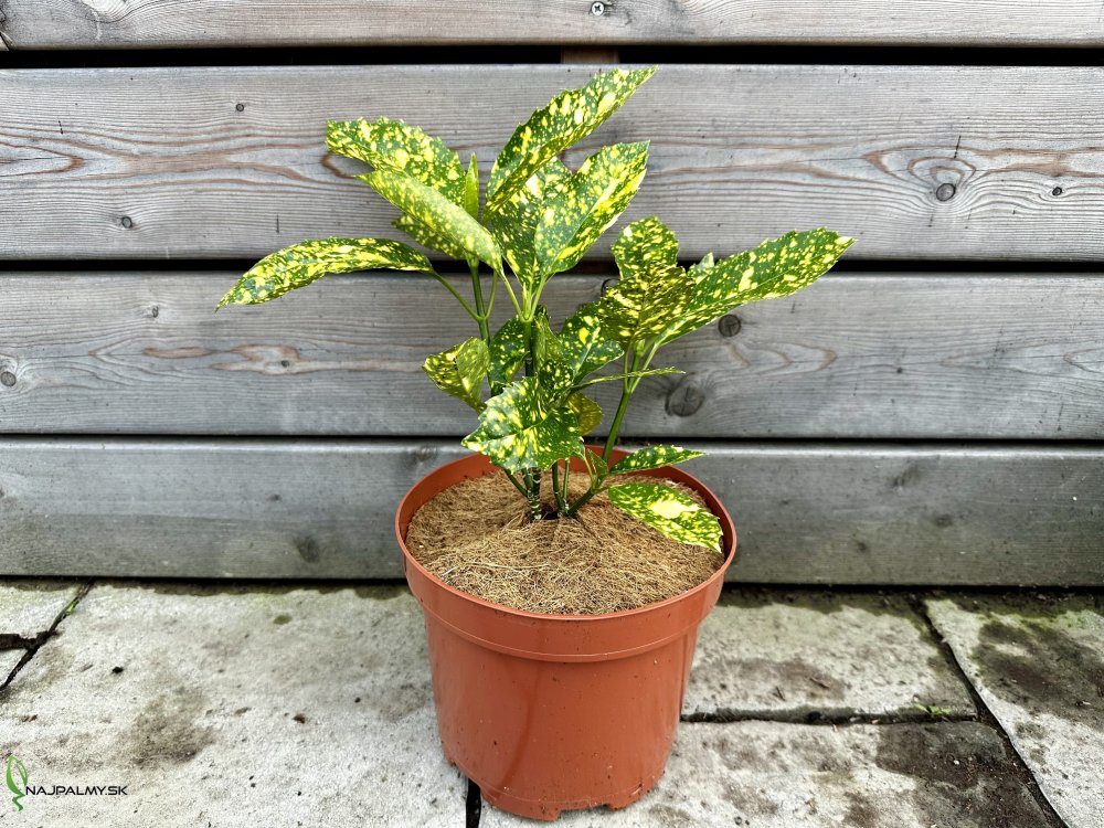 Aukuba japonská ´CROTONIFOLIA´ je stálozelený ker, typické sú zelené listy pokryté žltými fľakmi a sú dlhé 10 až 15 cm. Aukuba japonská dorastá do výšky približne 100-150 cm. V rovnakých rozmeroch sa pohybuje aj šírka dospelej rastliny. Ker má guľatý tvar a ideálnym miestom je potieň až tieň. Pôda by mala byť vlhká a dobre priepustná. Aukuba japonská určite vynikne v kvetináči na terase, v zimnej záhrade či v kancelárskych priestoroch.