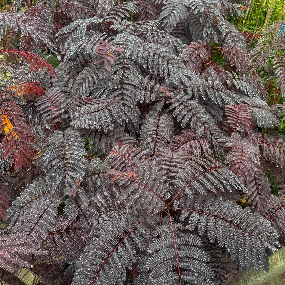 Albízia čokoládová ‘Summer Chocolate’® je výnimočná a veľmi zriedkavá odroda pochádzajúca z Japonska, ktorá upúta svojím exotickým vzhľadom a nezvyčajným sfarbením listov. Ide o menší, elegantný strom dorastajúci do výšky približne 4–6 metrov. Jeho jemne perovité listy pripomínajú čipku a počas celej sezóny hrajú tmavočokoládovými odtieňmi, ktoré nádherne kontrastujú s ružovými kvetmi.