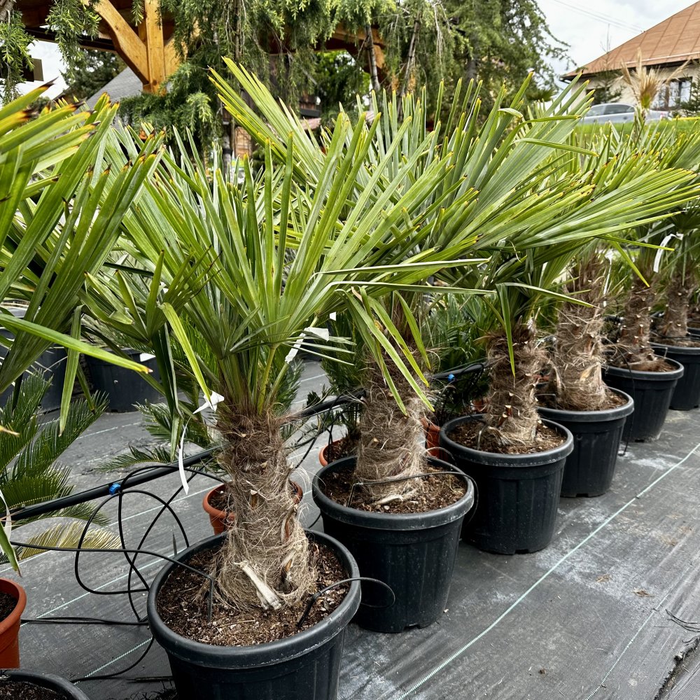 Trachycarpus fortunei (Palma konopná) - kont. C20L, výška kmeňa 15-25 cm, celková výška 70-90 cm - 2 palmy v jednom kvetináči (-17°C)