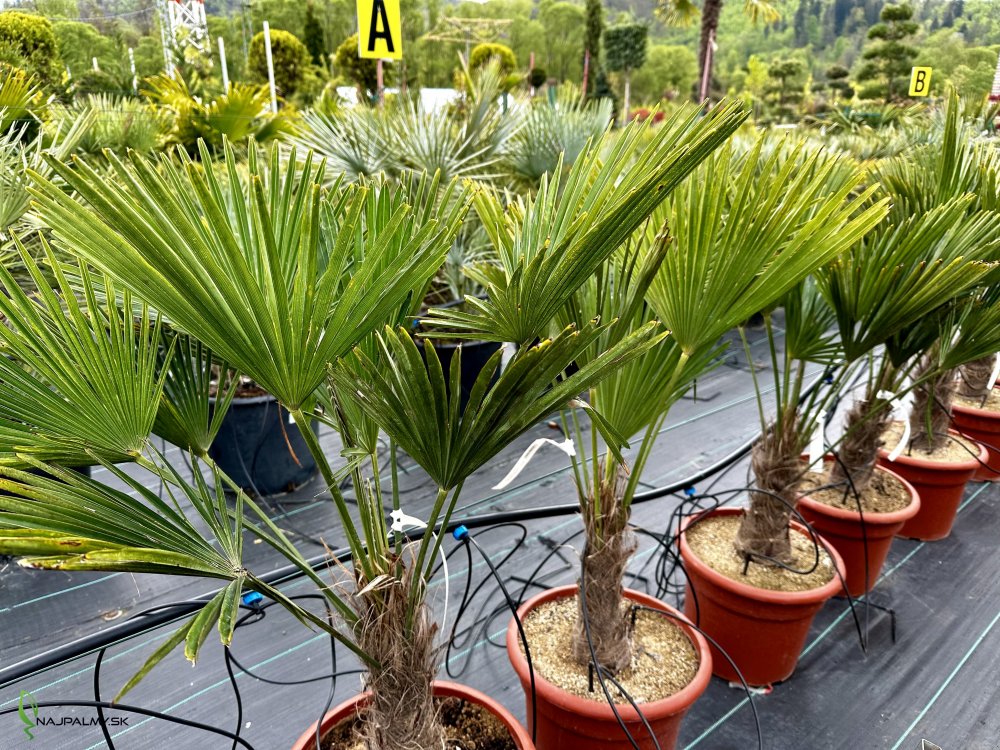 Trachycarpus Fortunei (Palma konopná) - kont. C230/285L, výška kmeňa: 220-240 cm, celková výška: 300-350 cm (-17°C)