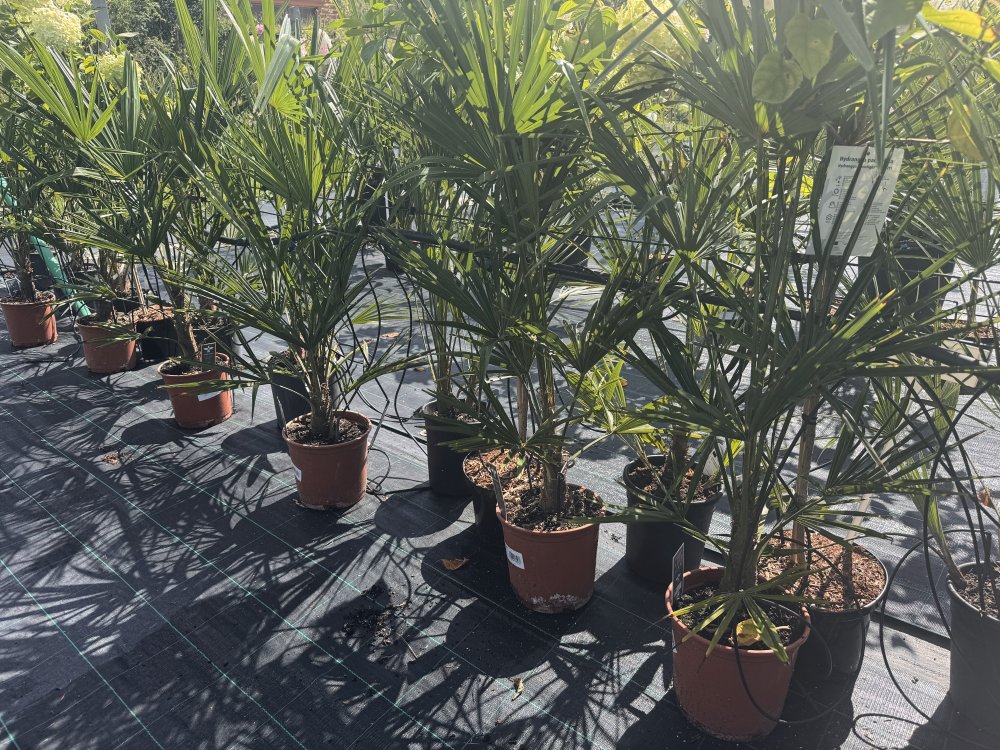Trachycarpus fortunei (Palma konopná) - kont. C30L, výška kmeňa 10-40 cm, celková výška 90-120 cm - 3 až 4 palmy v jednom kvetináči (-17°C)