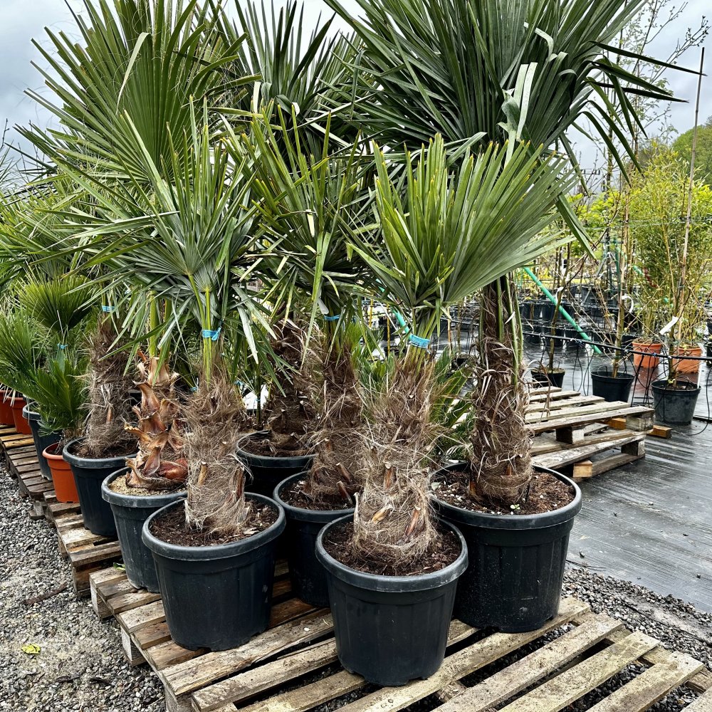 Trachycarpus fortunei (Palma konopná) - kont. C30L, výška kmeňa 10-40 cm, celková výška 90-120 cm - 3 až 4 palmy v jednom kvetináči (-17°C)