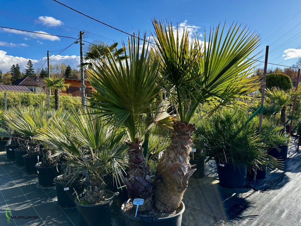 Washingtonia Filifera (Palma vláknitá) - kont. C110L, celková výška 200 cm, výška kmeňa 50-60 cm/80-90 cm (-4°C) - DVOJIČKY