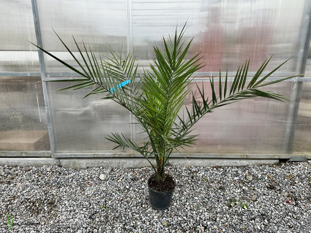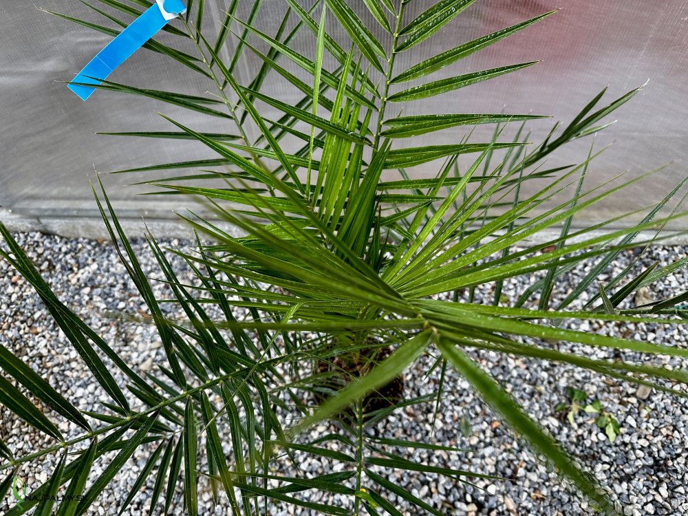 Datľovník je impozantná palma pochádzajúca z Kanárskych ostrovov, známa svojím majestátnym vzhľadom a dlhovekosťou. Tento strom môže dosiahnuť výšku až 20 metrov, v závislosti od podmienok pestovania, a je obľúbený pre svoje výrazné, pevnú kmeň a korunu s dlhými, arcovito zahnutými listami. Listy sú tmavozelené a môžu dosahovať dĺžku až 5 metrov. Je to rastlina, ktorá dodá každému prostrediu exotický nádych.