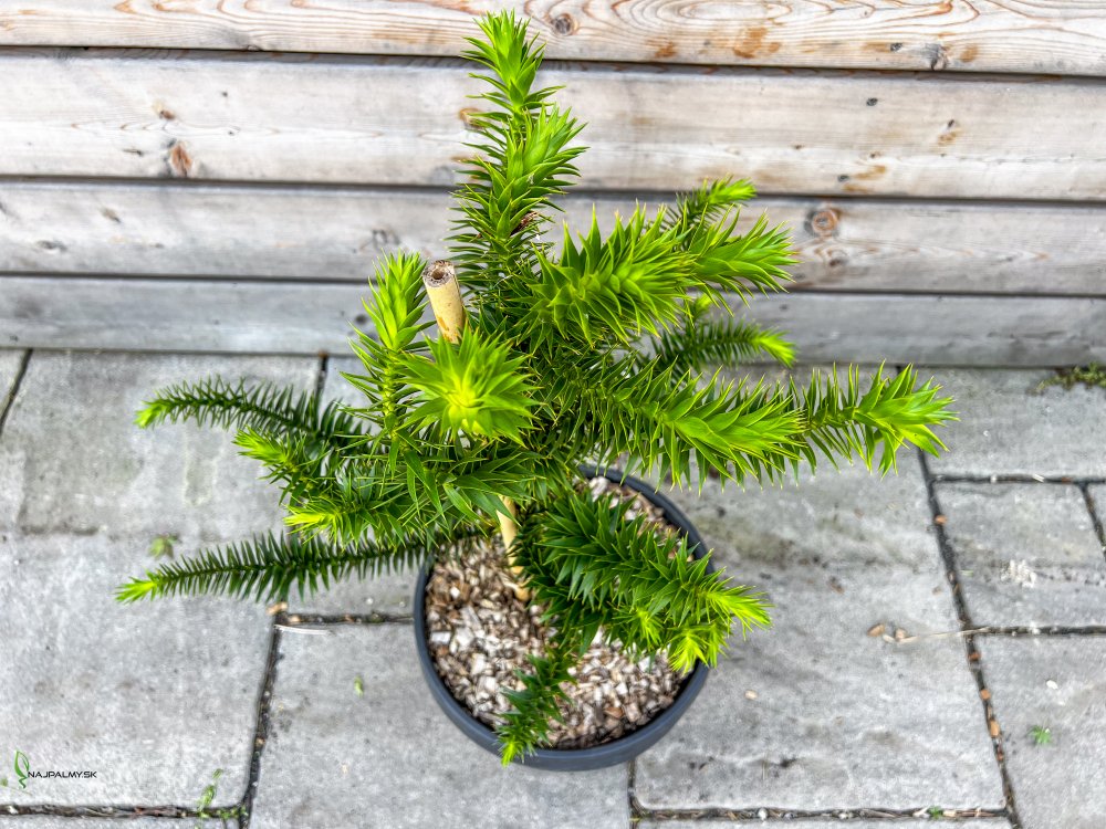 Strom Araukária je pomaly rastúci ihličnan so sivohnedou kôrou, vráskavý ako slonia koža. Konáre sú naplnené sploštenými a ostrými, lesklými, tmavozelenými listami. Araucaria araucana začína s pomalým rastom, ale keď sa presadí, môže rásť rýchlym tempom až 40-60 cm za rok. Toto je tempo rastu po približne 5 rokoch. Preferujú dostatok priestoru a slnečného svetla. Potrebujú dobre odvodnenú pôdu a nesmú byť podmáčané. Na zimu odporúčame zabaliť do netkanej textílie.
