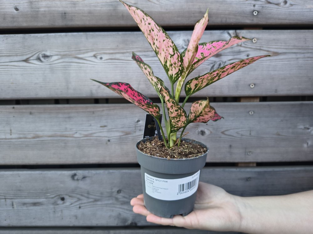 Aglaonema ‘Spicy Pink’ je atraktívna izbová rastlina, ktorá zaujme výrazným sfarbením listov v odtieňoch zelenej a ružovej. Listy sú lesklé, pevné a výrazne panašované, pričom ružové tóny dodávajú rastline moderný a dekoratívny vzhľad. Vďaka svojmu kompaktnému rastu je ideálna do interiérov, kde oživí každý priestor.